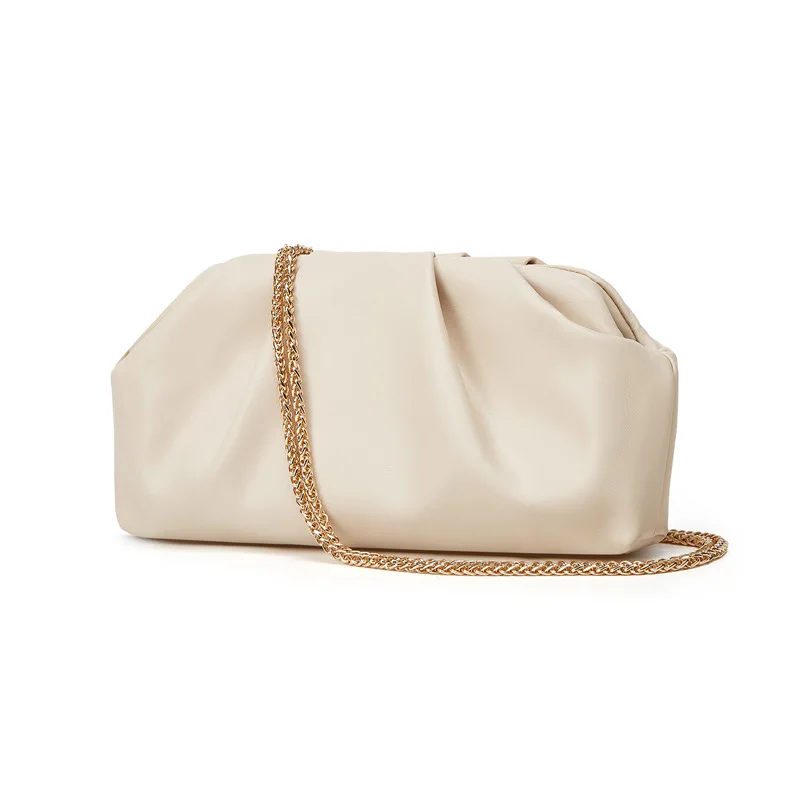 Factory Wholesale Ladies Luxury PU Leather Metal Fashion Wrinkled clouds Chain Crossbody Bag Women's Party Clutch Evening Bags